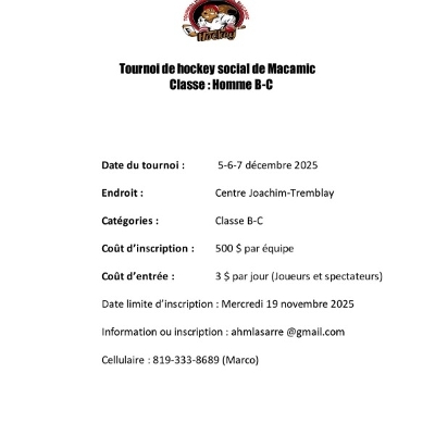 Tournoi de hockey social de Macamic Classe: Homme B-C