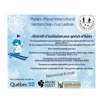Inscription obligatoire avant le 3 décembre : loisirs@municipalitenormetal.ca