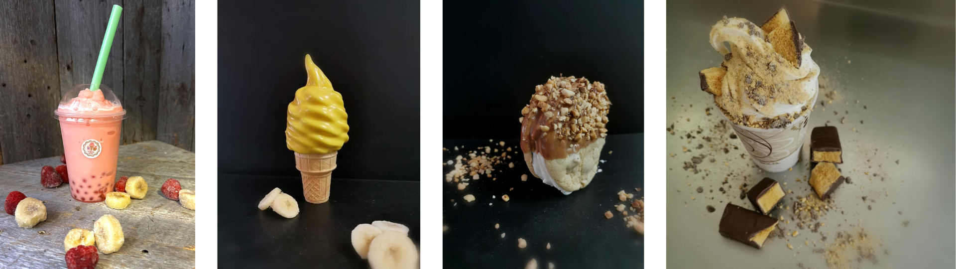 Du côté de la crèmerie, on retrouve de la crème glacée et des desserts glacés originaux, notamment les sandwichs glacés faits avec les biscuits maison de la pâtisserie.