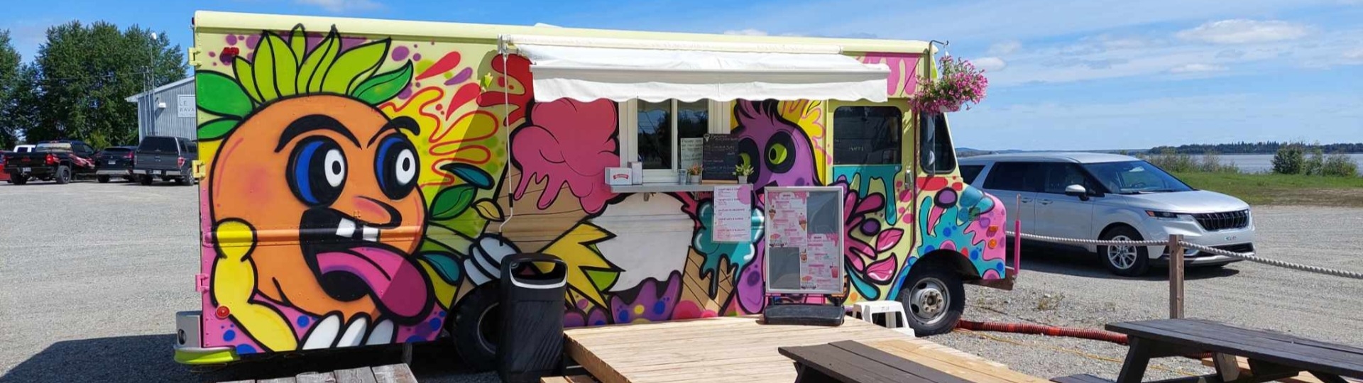 Nouvelle entreprise en région, Aux Délices Givrés est un camion de crème glacée situé à Macamic, près du parc de jeux d'eau.